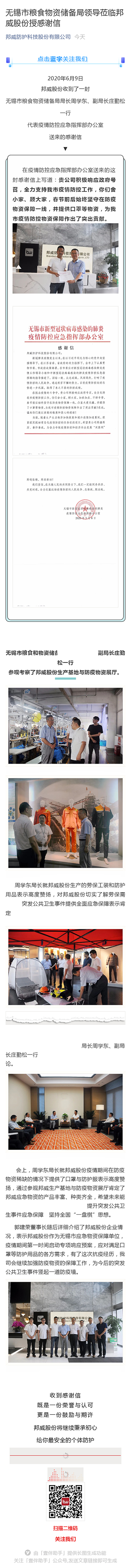 无锡市粮食物资储备局领导莅临邦威股份授感谢信