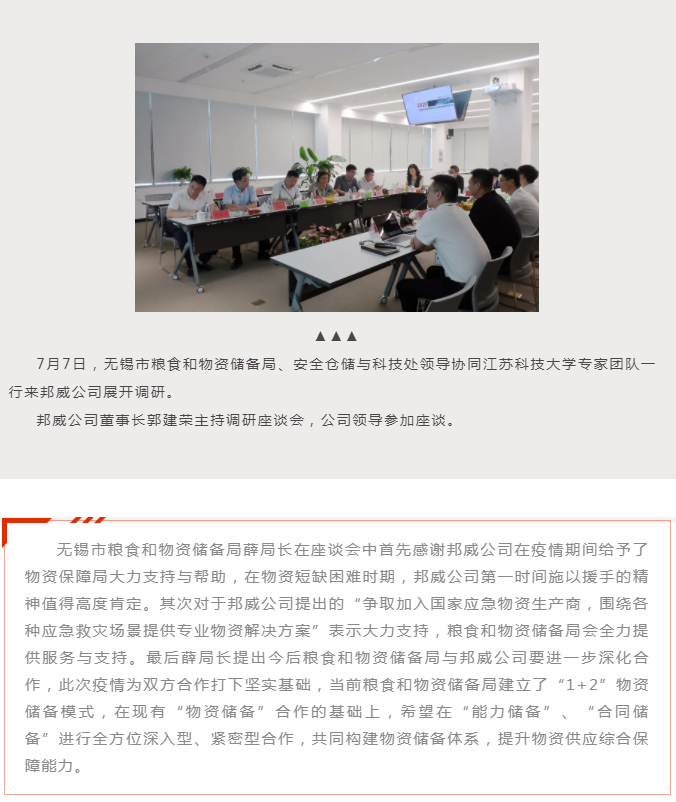 物资储备局、安全仓储与科技处领导与江苏科技大学专家团队来我司展开调研