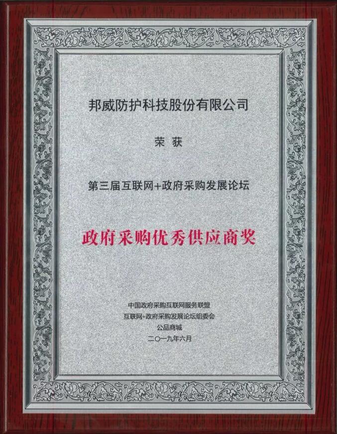 邦威防护荣获《政府采购优秀供应商奖》
